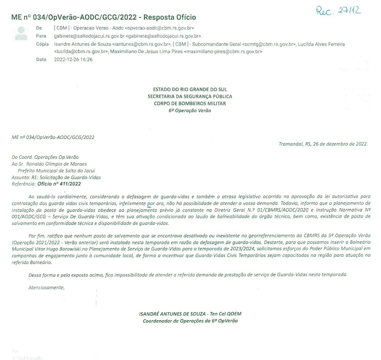 Durante todo o ano de 2021 a Administração Municipal de Salto do Jacuí por meio da Secretaria Municipal de Turismo foi em busca de guarda-vidas para o Balneário Municipal Vitor Hugo Borowiski durante a temporada de veraneio, com o objetivo de fortalecer a segurança na área balneável, para evitar afogamentos e para auxiliar em alguma […]