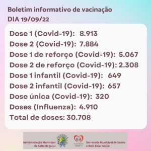 21 de setembro de 2022 - em CORONAVIRUS – BOLETINS EPIDEMIOLÓGICOS‚ Notícias Vacinação Covid-19 Por imprensa Comment off Boletim informativo de vacinação (19/09/22) Anterior Boletim informativo Covid-19 (19/09/22) Próximo Nossa reverência aos gaúchos e gaúchas que celebram e valorizam as tradições do nosso Rio Grande
