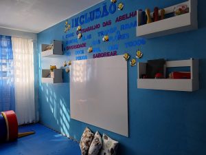 A Sala de AEE tem por objetivo dar suporte pedagógico específico aos alunos com Necessidades Educacionais Especiais (NEE), contribuindo para o desenvolvimento das habilidades dos pequenos.