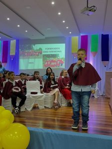 “É com imensa alegria que parabenizamos os formandos. Toda a equipe da EMEI Harmonia deseja que a partir de agora trilhem um mundo letrado, repleto de grandes desafios e descobertas. Que aprendam com afinco, responsabilidade, amor e dedicação. Nós estaremos sempre torcendo por eles.” Mensagem da diretora da escola, Simone Bernardy.