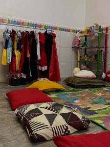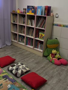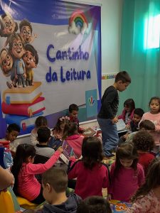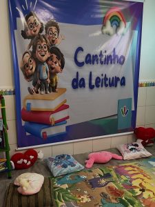 O espaço é um incentivo às práticas e ao hábito da leitura e também à interação entre as crianças, os adultos e os livros.