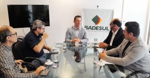 O prefeito Ronaldo Moraes esteve na última segunda-feira, 20 de outubro, acompanhado dos servidores Adrean Rossetto e Luciano Barros, na sede do Badesul, em Porto Alegre, em reunião com o superintendente do setor público do Badesul, Diego Paiva, e do Diretor Financeiro Robson Ferreira.