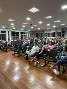 A palestra foi ministrada pela profissional Cassiana Descovi Soares Behenck, da Neuroconfiar, de Uruguaiana, que abordou temas como a prevenção de comportamentos desafiadores, a compreensão e observação de comportamentos a partir de análises funcionais, além da importância da busca por conhecimento contínuo para quem convive ou atua profissionalmente com crianças e adolescentes com transtornos do espectro autista.