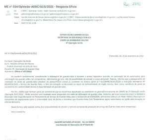 Mesmo sem um retorno positivo, este ano novamente foi procurado o Corpo de Bombeiros Militar, por meio da Secretaria da Segurança Pública do Estado do Rio Grande do Sul, com o oficio nº411/2022, expedido pelo Prefeito Municipal Ronaldo Moraes o qual além de requerer via documento, oficializou este pedido via ligação telefônica para que nosso Balneário fizesse parte da 6ª Operação de Verão, e desta forma fosse contemplado com guarda-vidas.